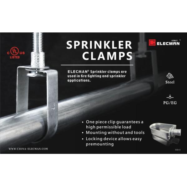 ELECMAN ® Galvanized steel E-Z grip sprinkler loop pipe hanger with knurled nut are used for supporting sprinkler piping in fire protection applications, and recommended for suspending stationary non-insulated pipe lines. Ideal for suspension using Threaded pins and Threaded rods.