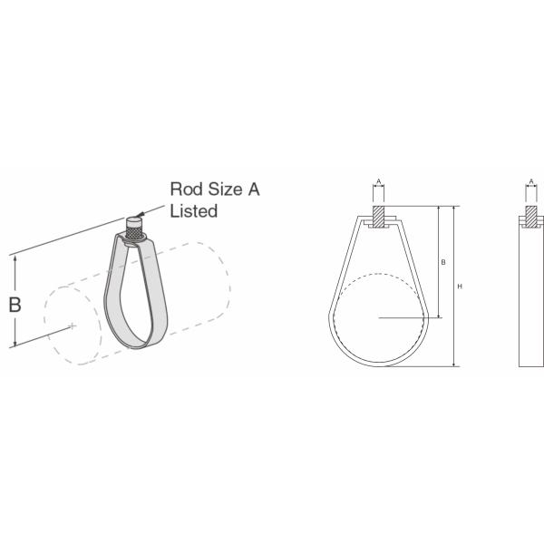 | CAT # | Trade Size | Diameter | Rod Size(A) | Strip Size | Total Height(H) | Safe Working Load |