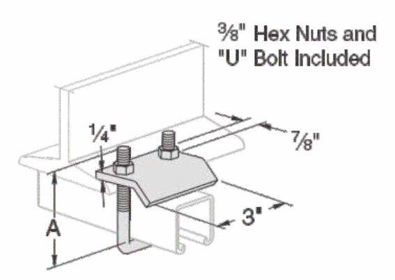 ELECMAN ® Zinc plated steel U-bolt type strut channel to beam beam clamp is for clamping double channel section to the underside of a steel I beam with a maximum web thickness of 22mm. Suitable for 83mm back to back section. Supplied complete with U-Bolt. Set screws must be tightened and torqued onto the sloped side of the I-beam.