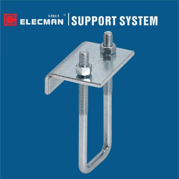 ELECMAN ® Steel U-bolt conduit clamps right angle pipe clamps for channel ES-201 are used to secure channel beams in a strut assembly. They are manufactured from carbon steel and coated with an electroplated steel finish.
